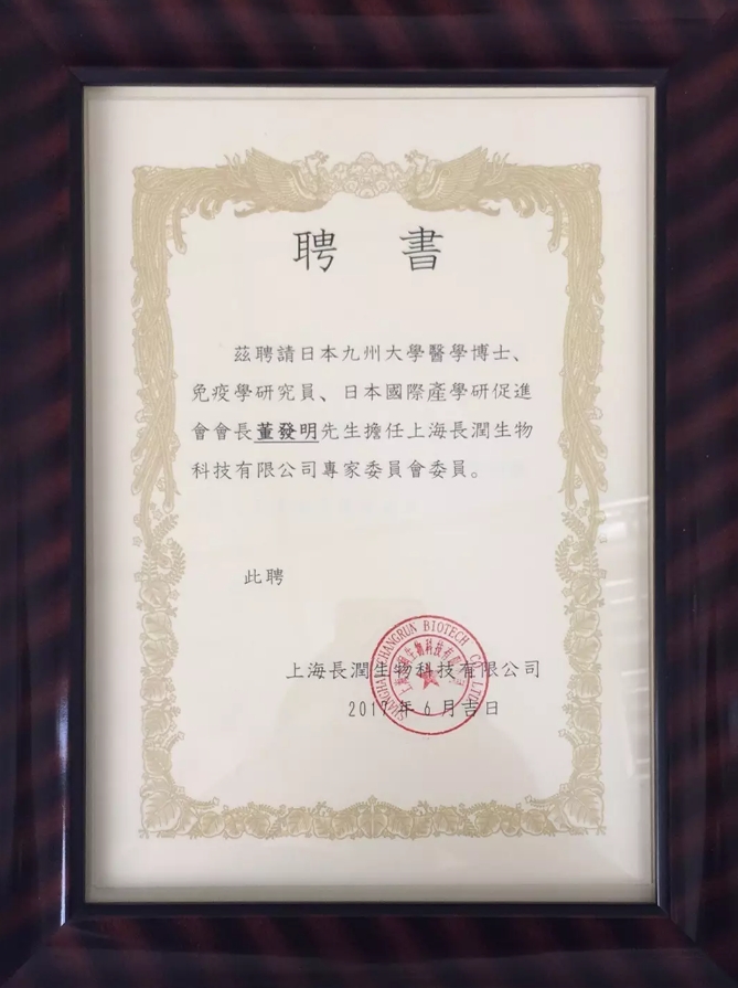 董発明先生は「上海長潤」が初めて招聘した国際的な免疫学分野の専門家です。彼の加入は、「上海長潤」にとって重大な歴史的意義を持つだけでなく、「上海長潤」の国際化プロセスに濃厚な一筆を加え、「上海長潤」の国際的な産学研研究開発拠点の世界的な戦略的配置に新たな頁を開くものです。