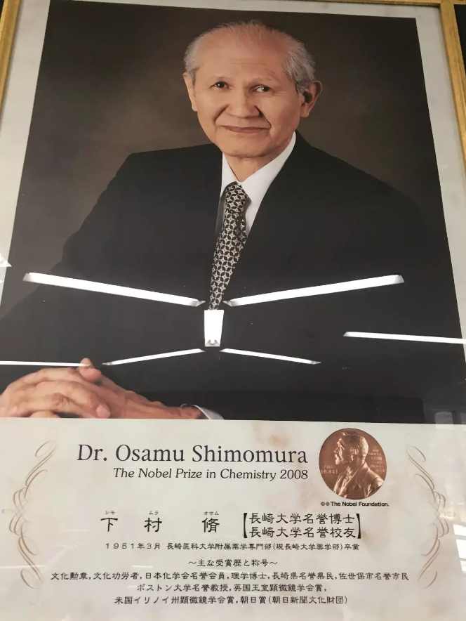 長崎大学名誉博士の下村修先生は日系アメリカ人科学者で、アメリカの科学者マーティン・チャルフィー、华裔アメリカ人科学者銭永健と共に、緑色蛍光タンパク質の発見における卓越した業績により、2008 年度ノーベル化学賞を共同で受賞しました。